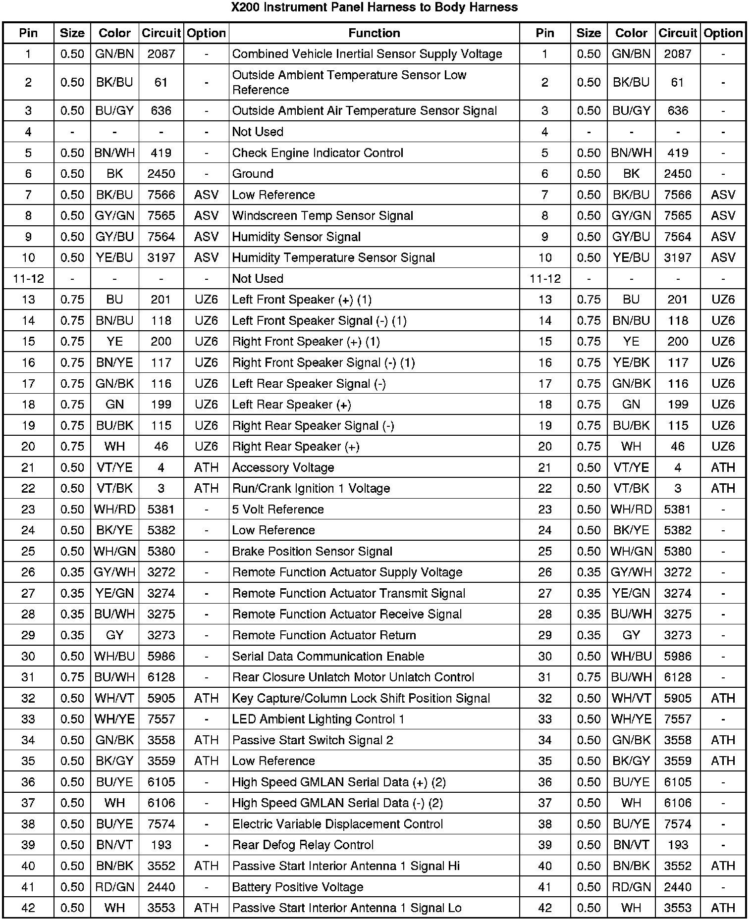 X200 Instrument Panel Harness to Body Harness