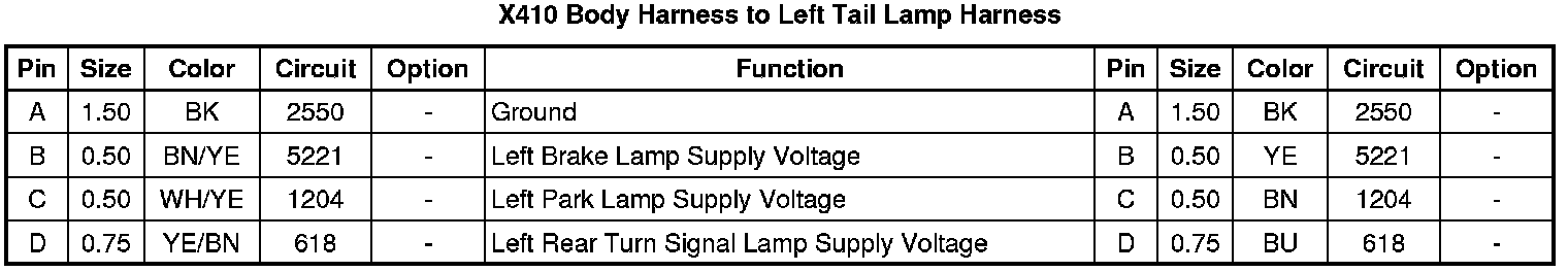 X410 Body Harness to Left Tail Lamp Harness