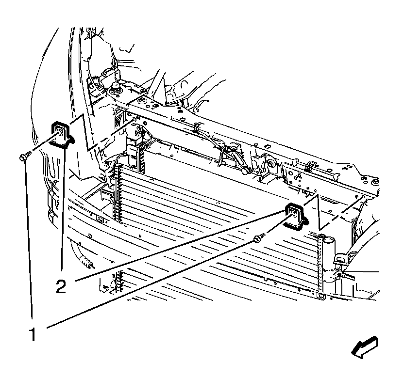 4. Install the 2 radiator upper brackets (2).