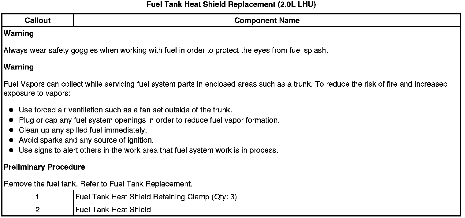Fuel Tank Heat Shield Replacement (2.0L LHU)