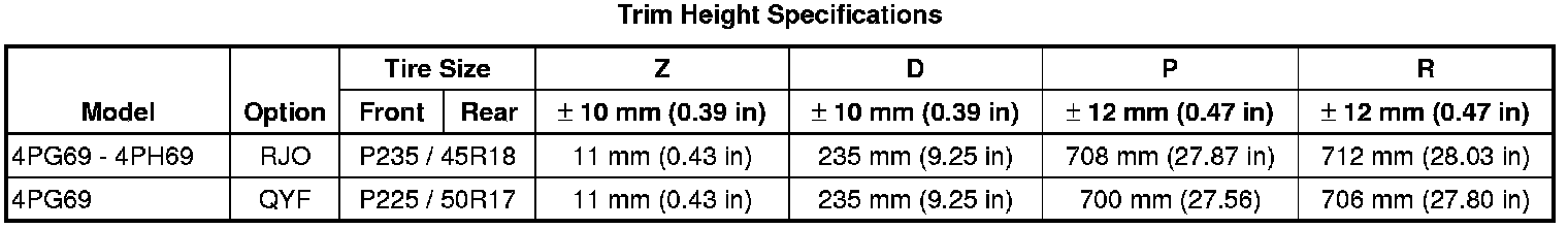 Trim Height Specifications