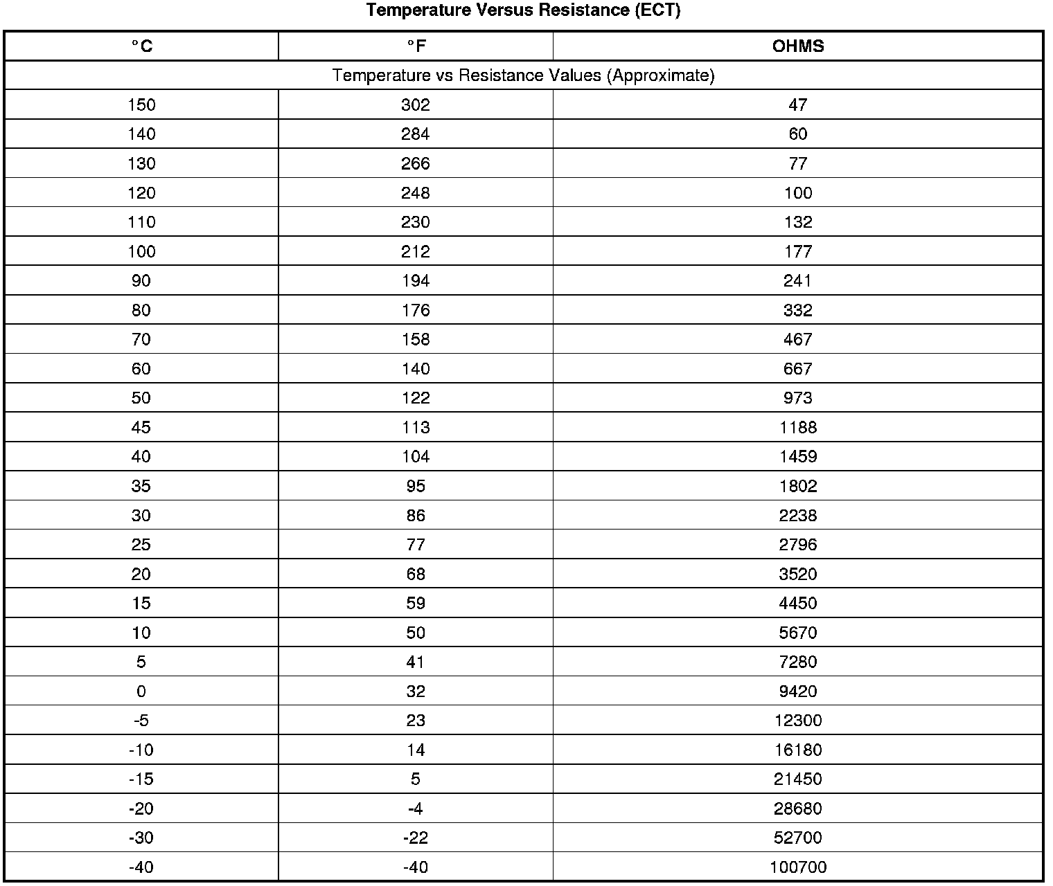 Temperature Versus Resistance (ECT)
