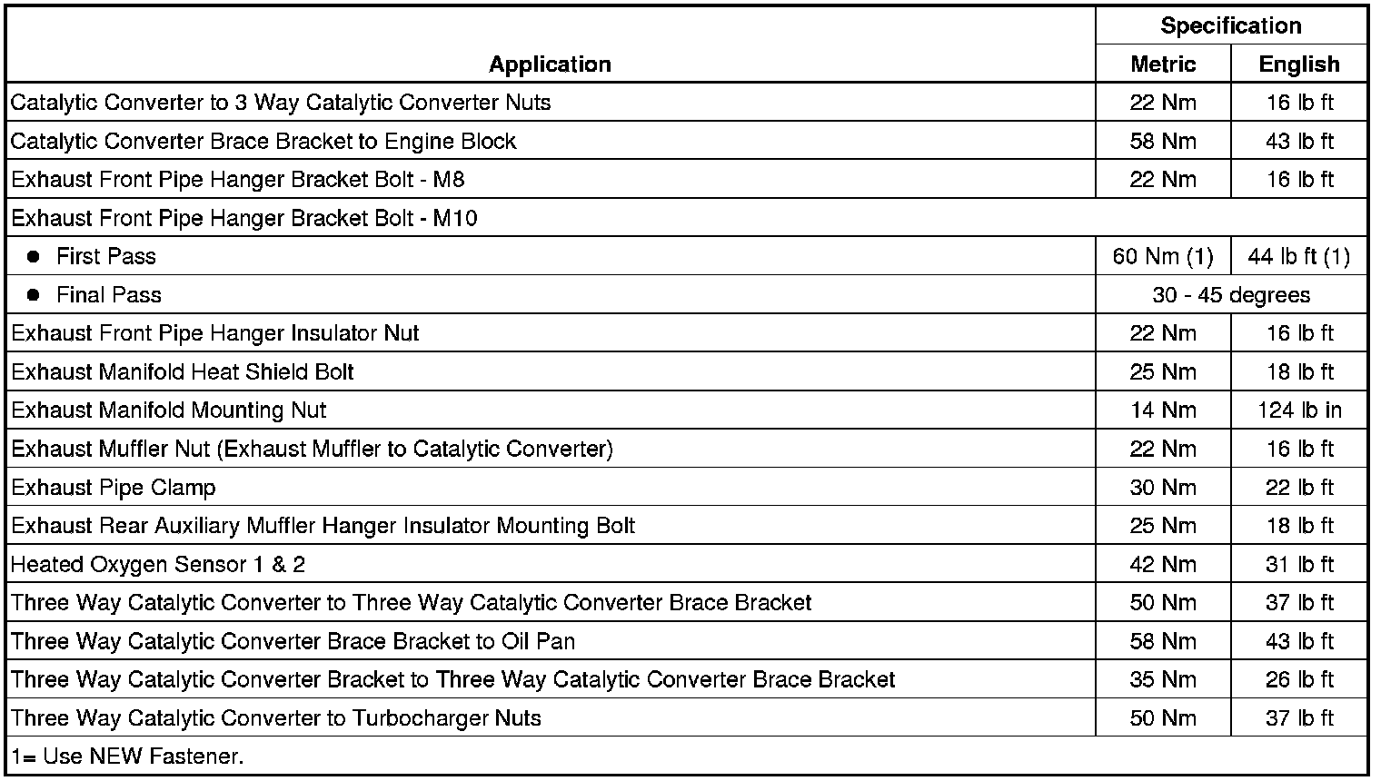 Fastener Tightening Specifications (2.0L LHU)