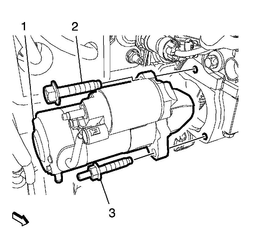 4. Tighten the starter bolt to 58 Nm (43 lb ft).