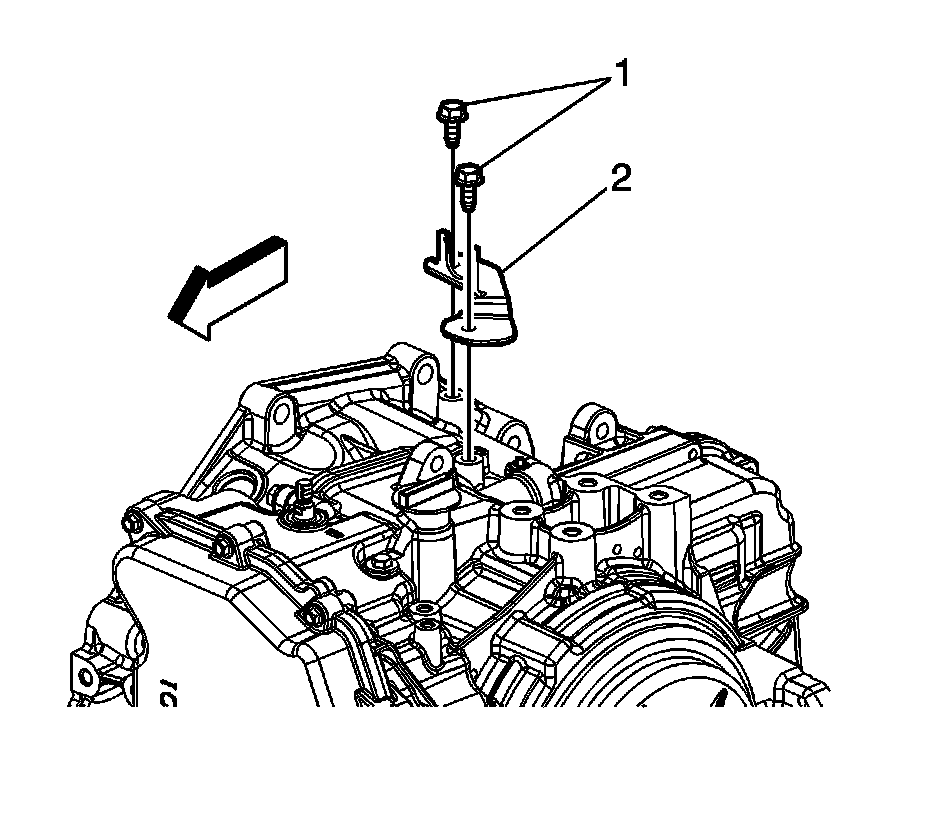 6. Remove the transmission range selector cable bracket (2).
