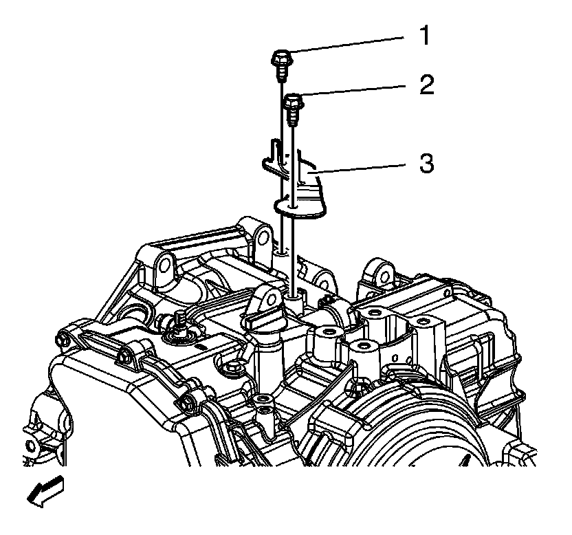 1. Install the transmission range selector cable bracket (3).
