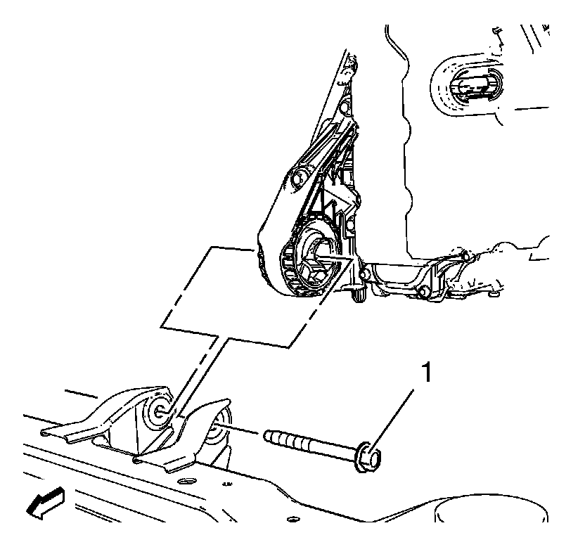 3. Install the transmission front mount through bolt (1) and tighten to 100 Nm (74 lb ft).