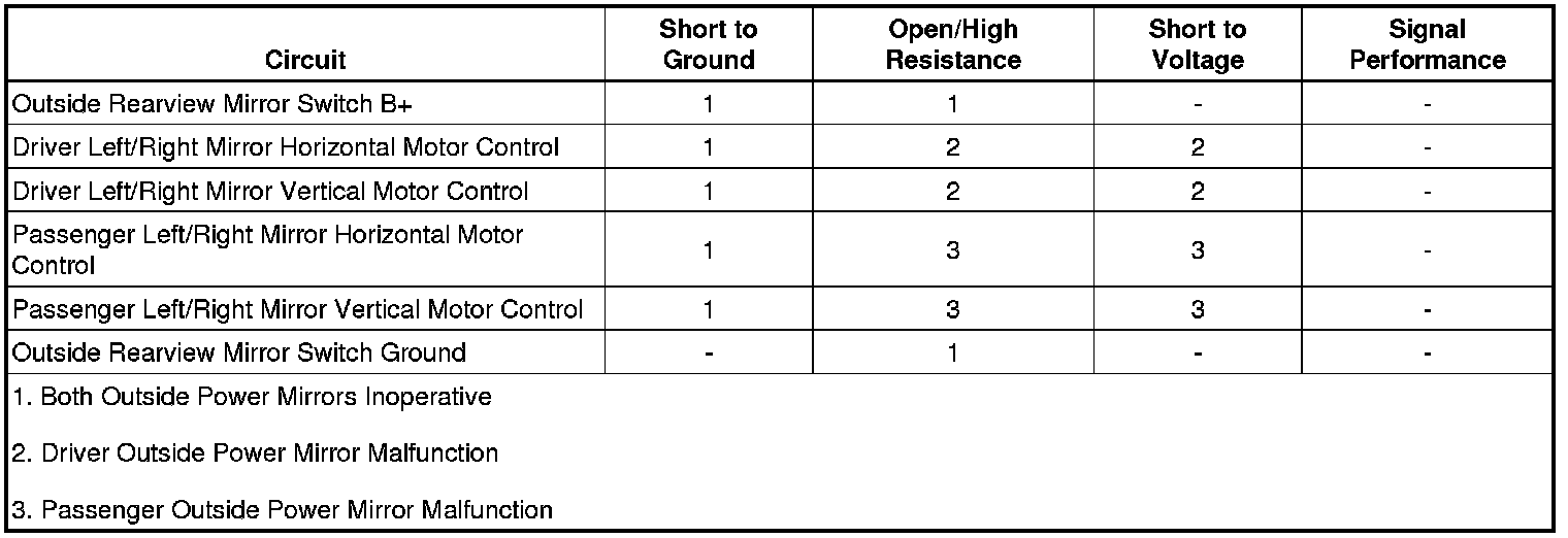 Refer to Circuit/System Testing - Both Outside Mirrors Inoperative.