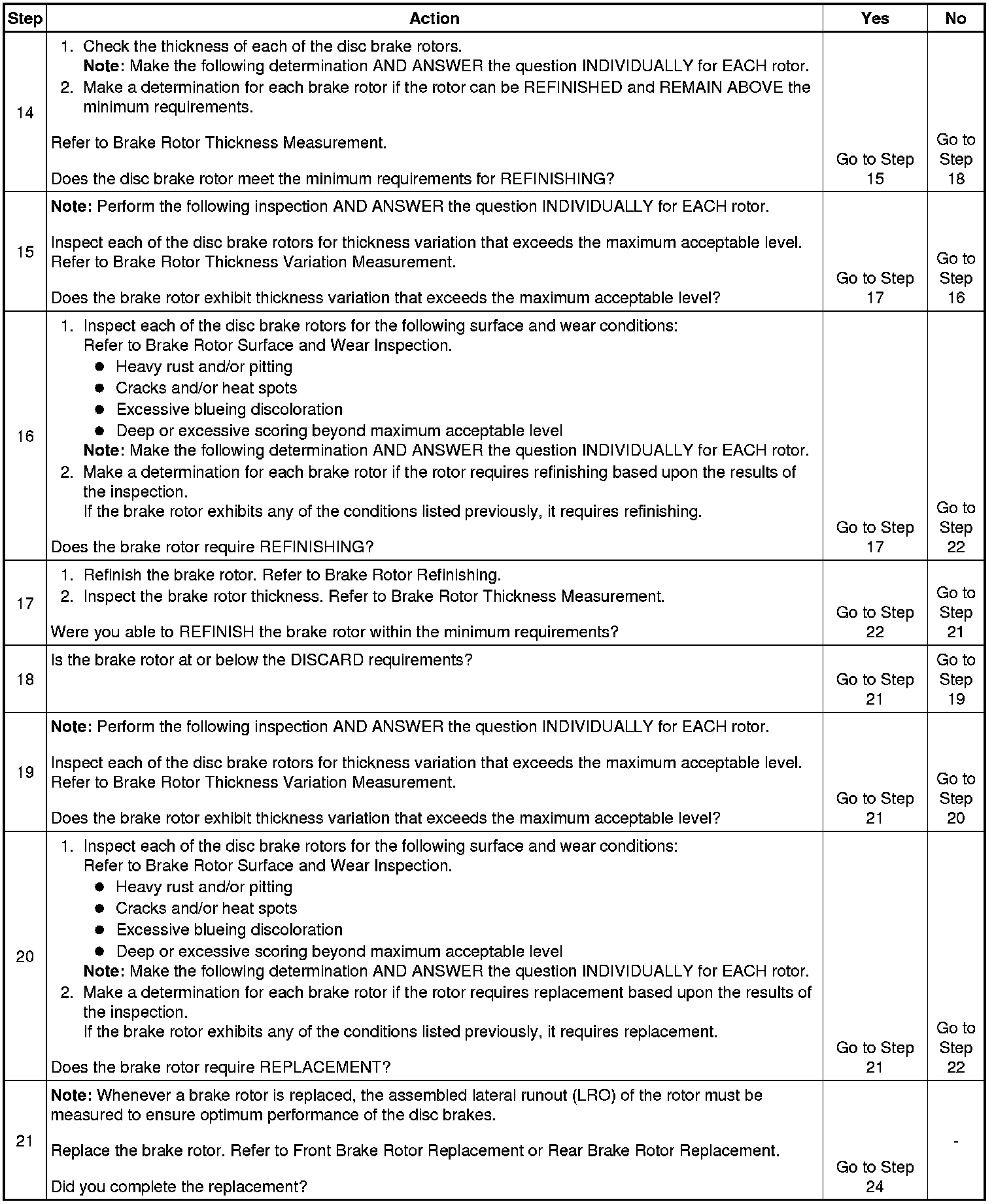 Disc brake rotor assembled lateral runout (LRO) that exceeds the maximum acceptable level can lead to thickness variation.
