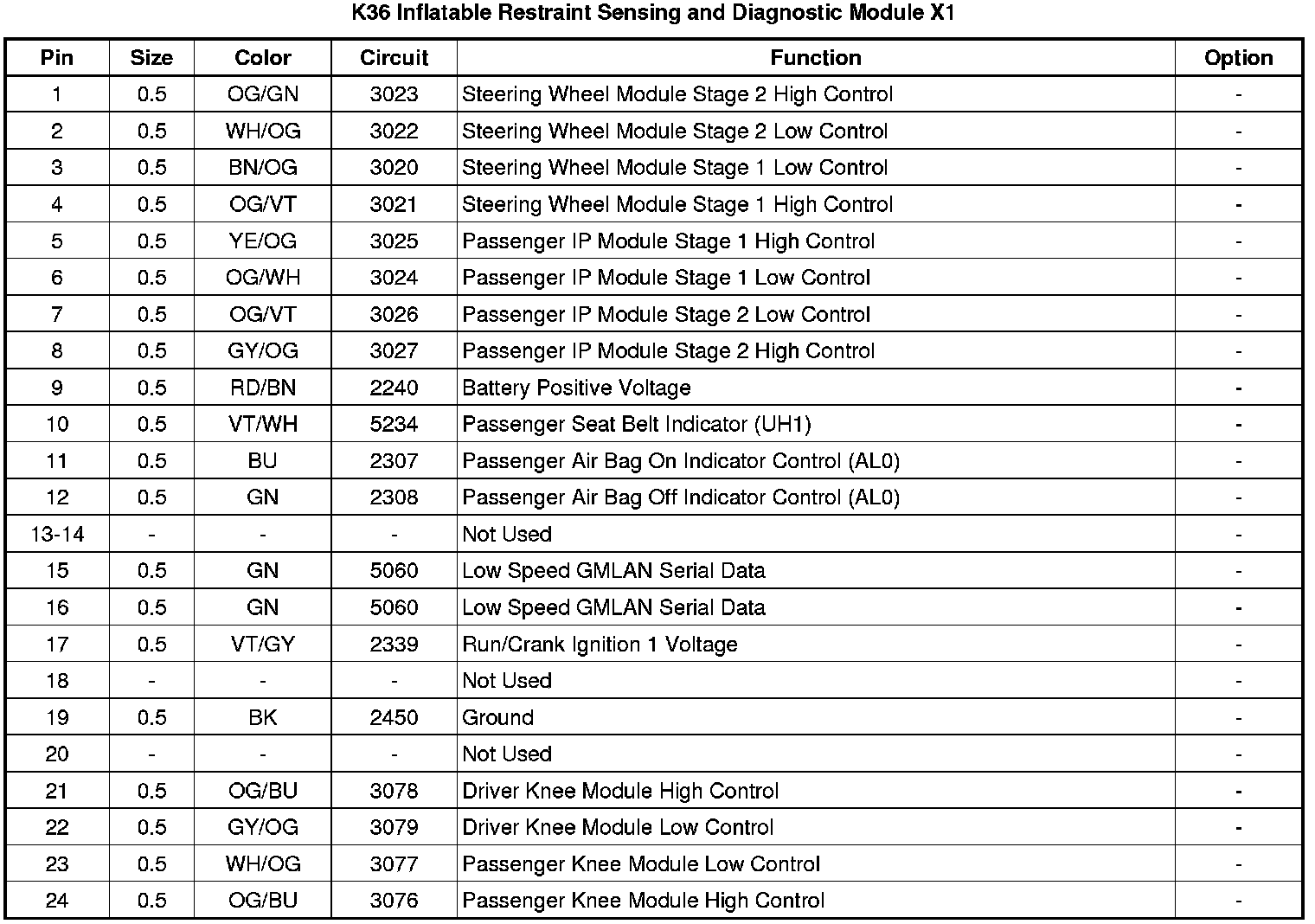 K36 Inflatable Restraint Sensing and Diagnostic Module X1