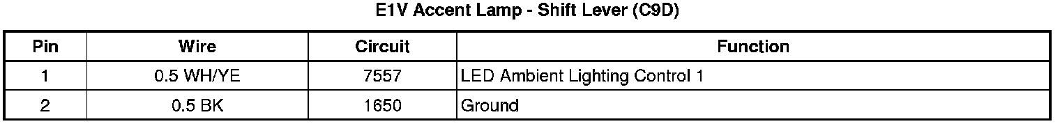 E1V Accent Lamp - Shift Lever (C9D)