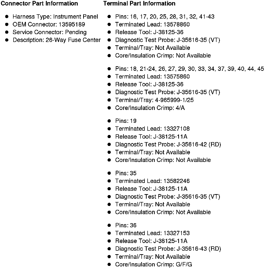 Fuse Block - Instrument Panel Wire Entry Fuses