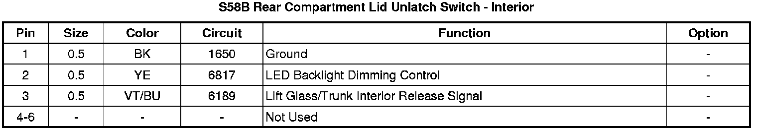 S58B Rear Compartment Lid Unlatch Switch - Interior