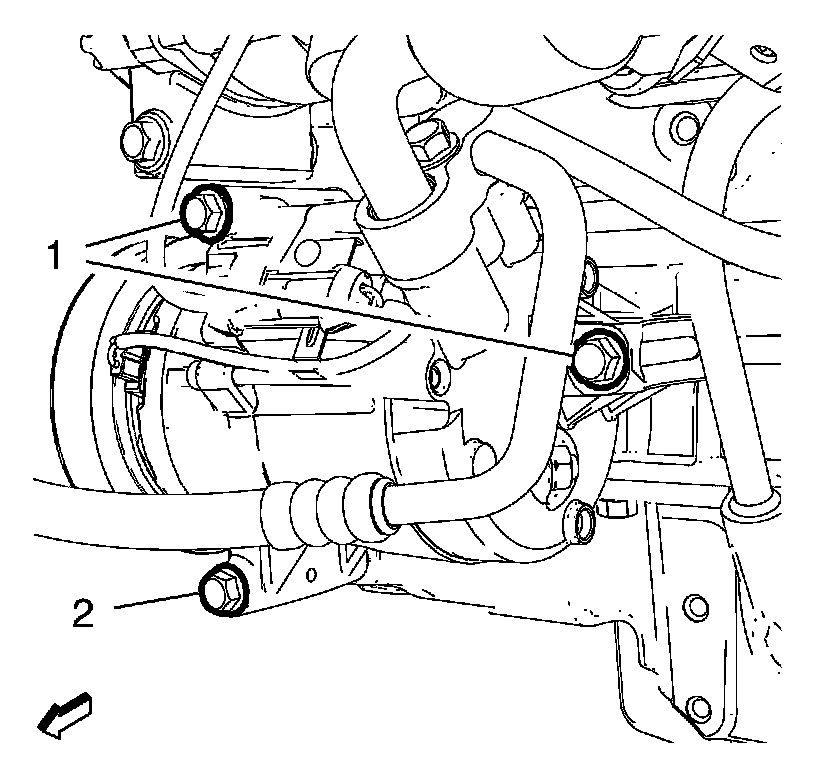 5. Loosen the 3 A/C compressor bolts (1, 2).