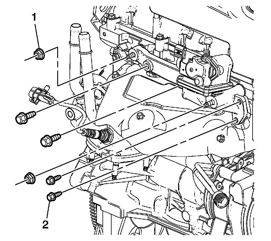 1. Remove the secondary air injection bolts (2) and nuts (1).