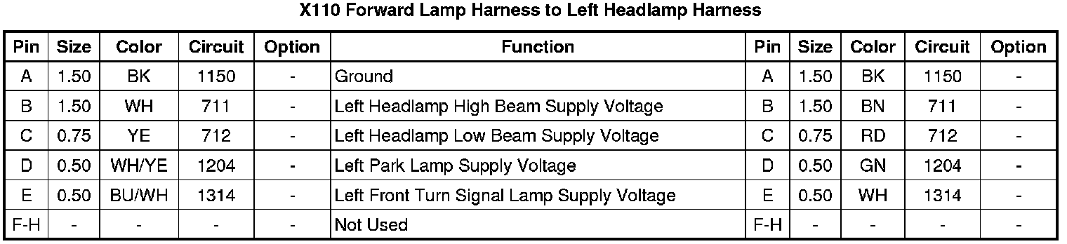 X110 Forward Lamp Harness to Left Headlamp Harness