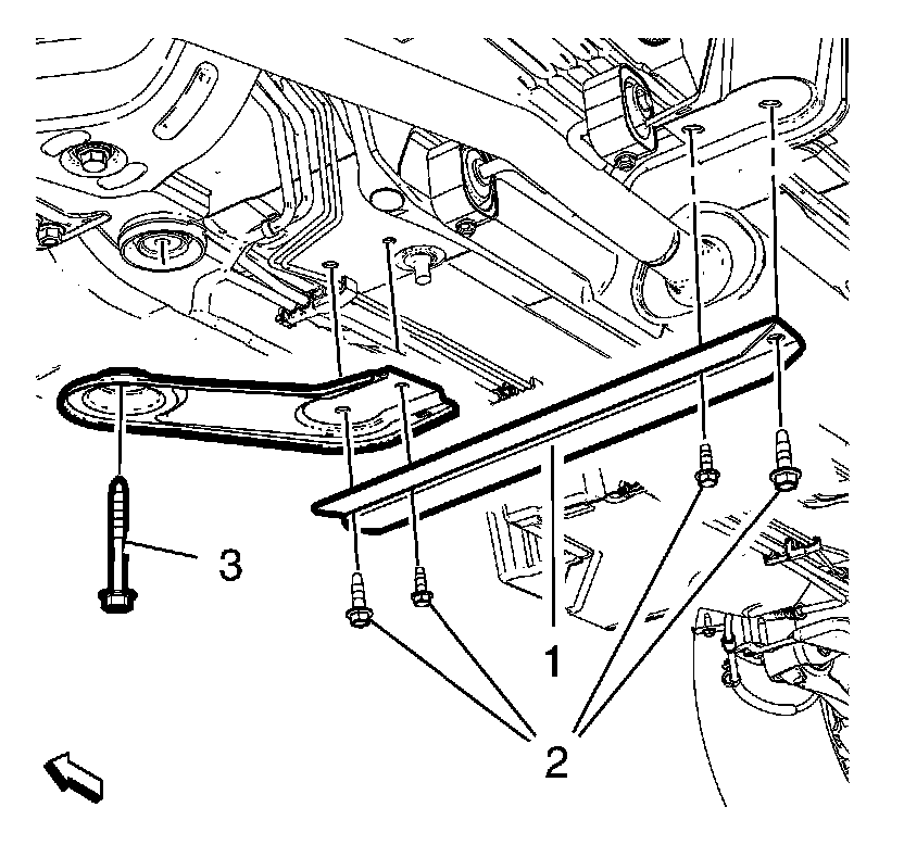 9. Install the NEW drivetrain and front suspension frame bolt (3) and tighten to 160 Nm (118 lb ft).