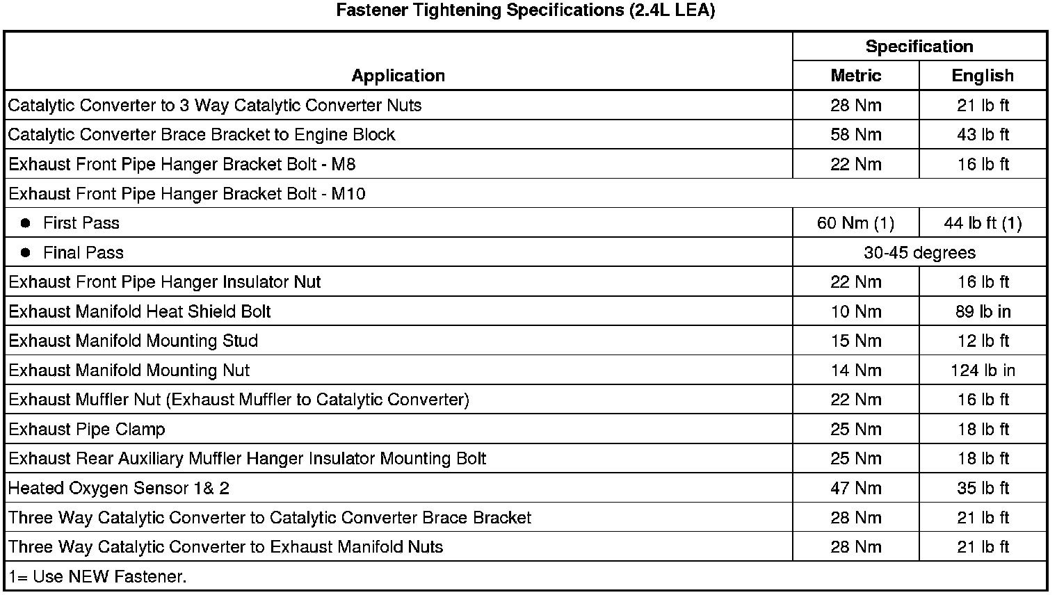 Fastener Tightening Specifications (2.4L LEA)
