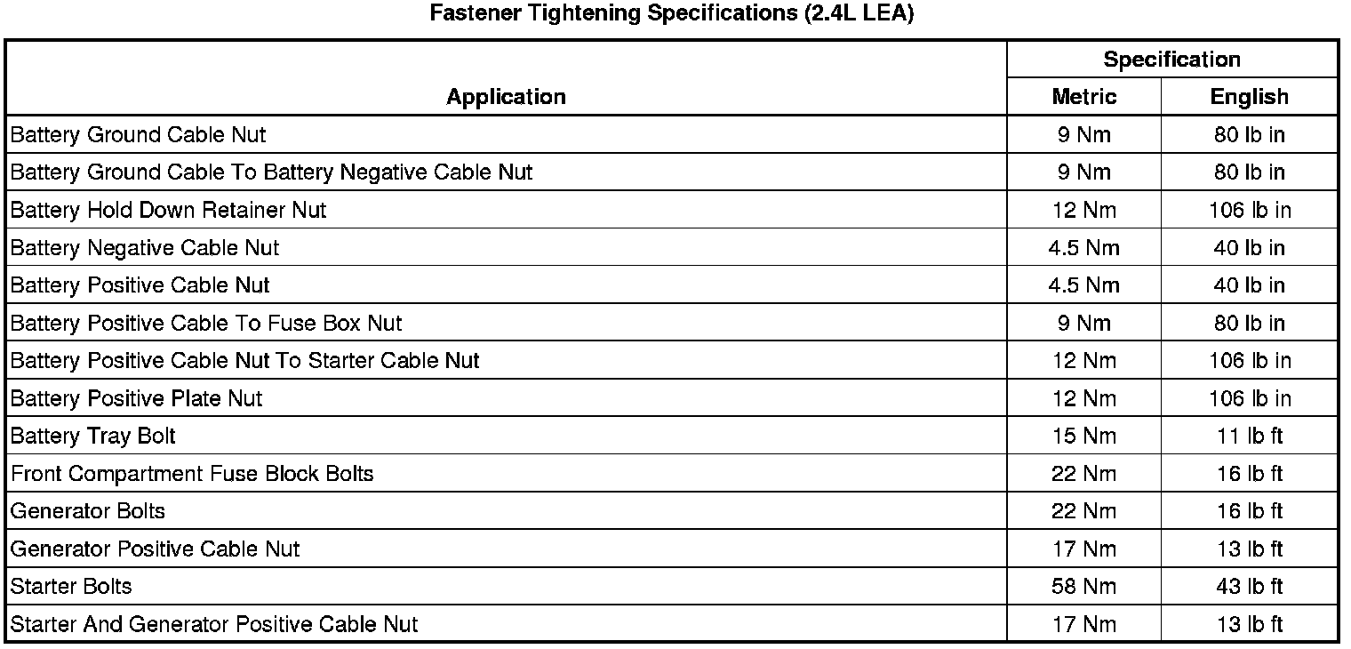Fastener Tightening Specifications (2.4L LEA)