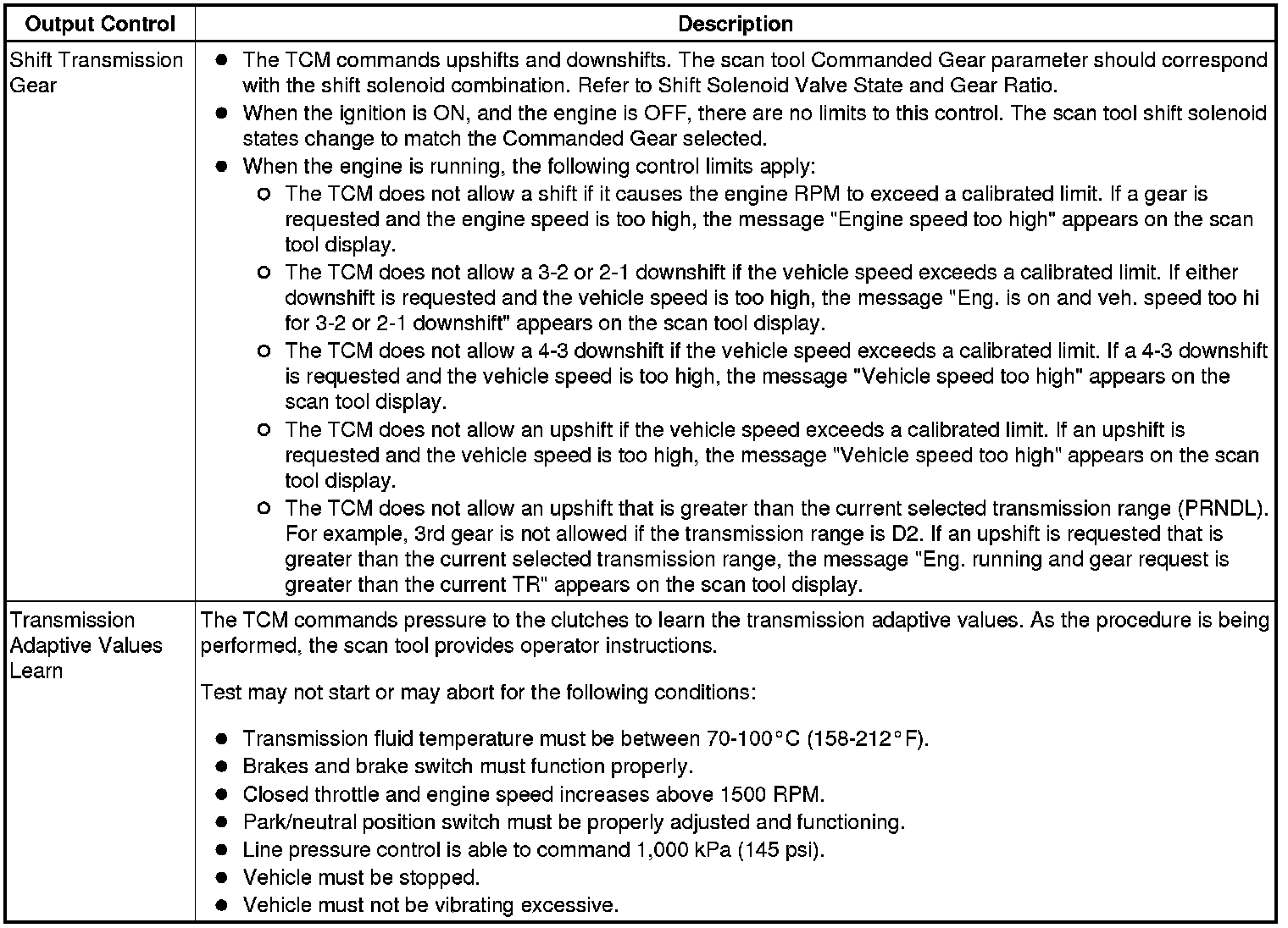 The Transmission Control Module Scan Tool Data List contains all transmission related parameters that are available on the scan tool. The list is arranged in alphabetical order. A given parameter may appear in any one of the data lists, and in some cases may appear more than once, or in more than one data list in order to group certain related parameters together.