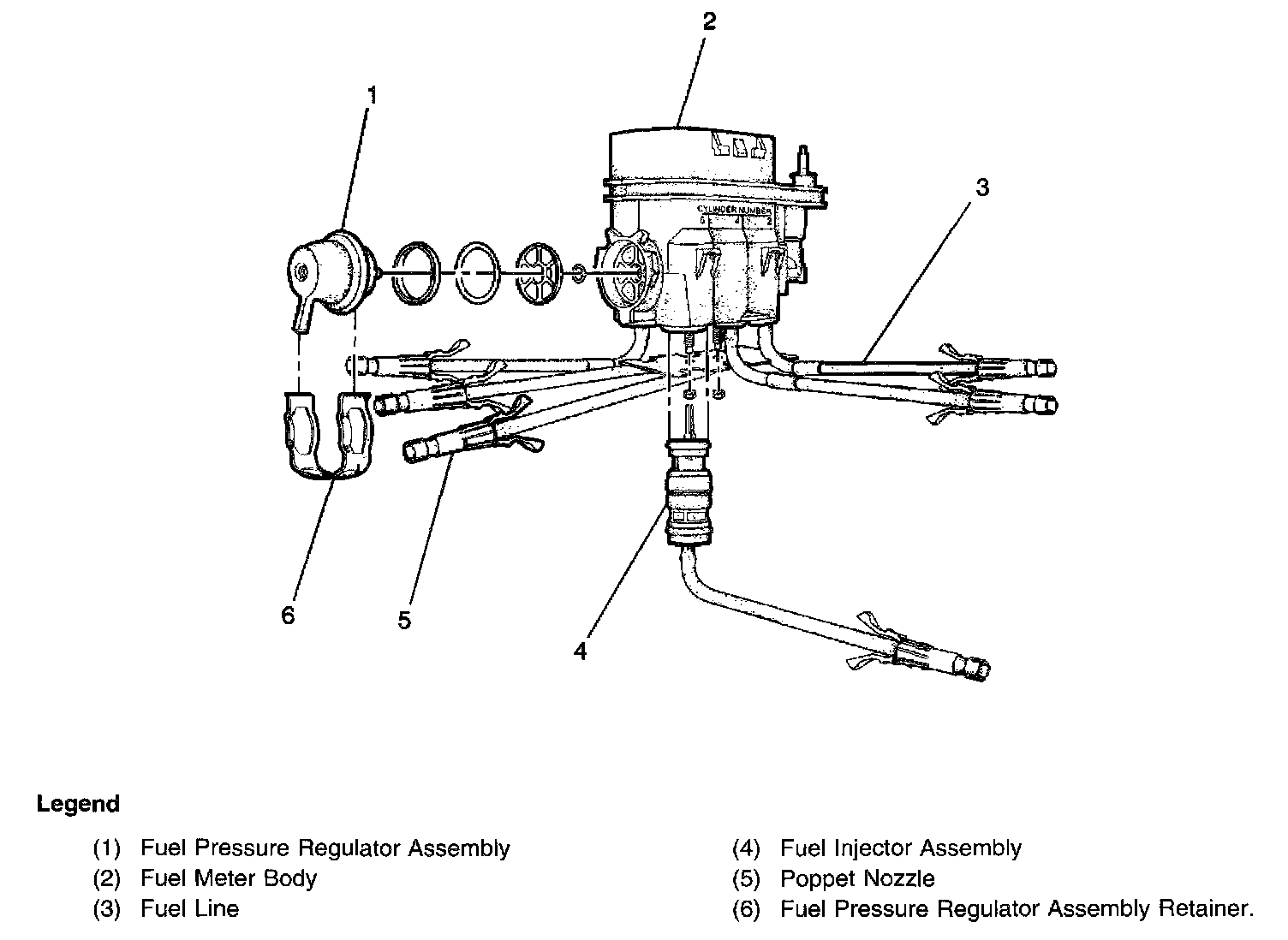 This includes the fuel injector poppet assembly, fuel pressure regulator, fuel pump and fuel pump relay. The fuel system wiring schematic diagram is covered in Fuel Pump Circuit Diagnosis.