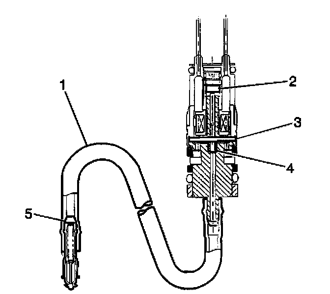 Each fuel injector assembly is a solenoid-operated device, controlled by the VCM. The fuel injector assembly meters the pressurized fuel through a poppet nozzle (5) to a single engine cylinder.