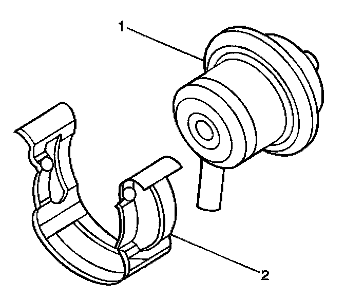 The fuel pressure regulator (1) is a diaphragm-operated cartridge relief valve with the fuel pump pressure on one side and the regulator spring pressure and intake manifold vacuum on the other. A retainer (2) holds the fuel pressure regulator.