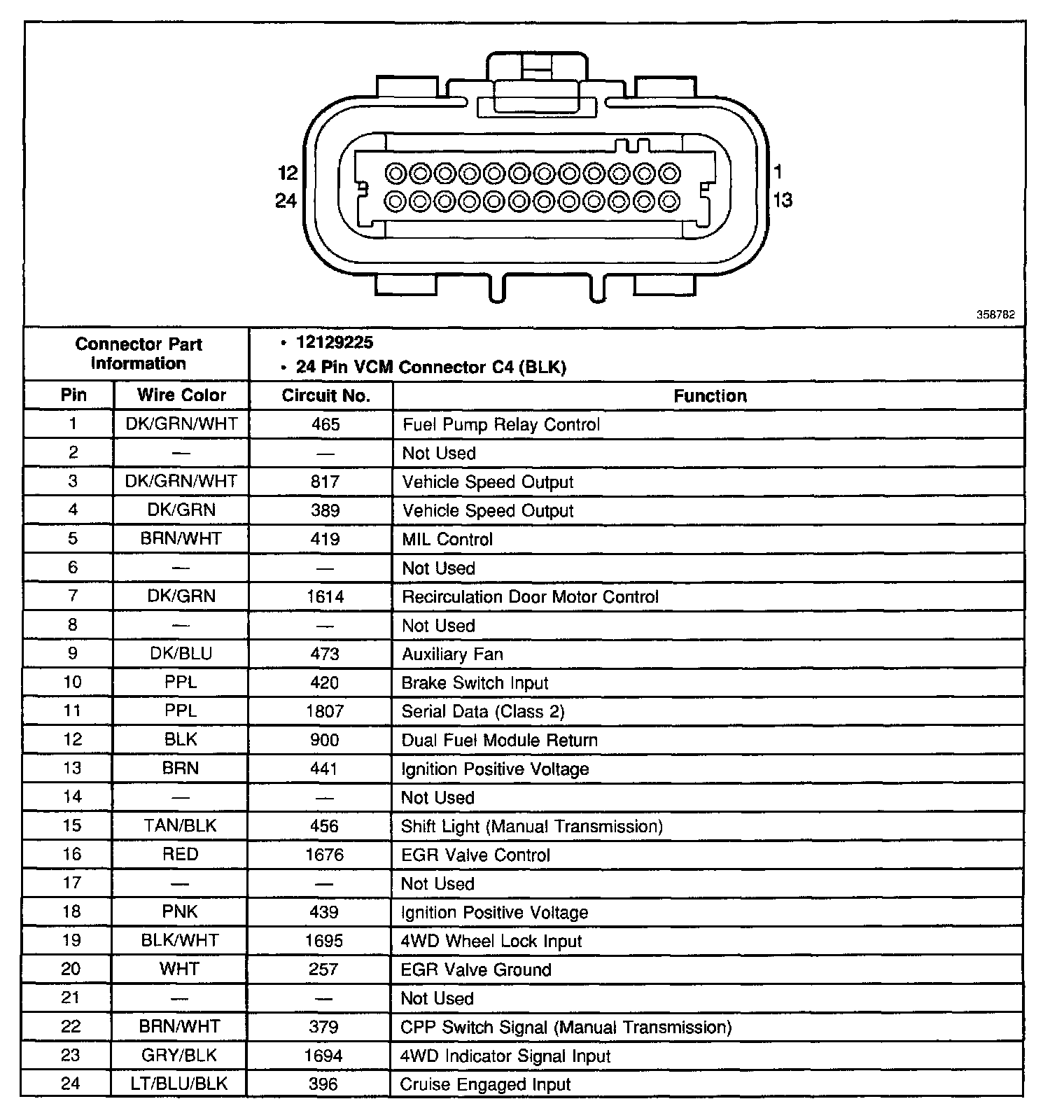 Vehicle Control Module (VCM) Connector C4: