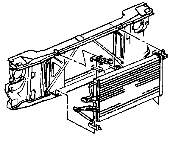 11. Bend outboard the left grille support in order to gain clearance for the condenser removal.