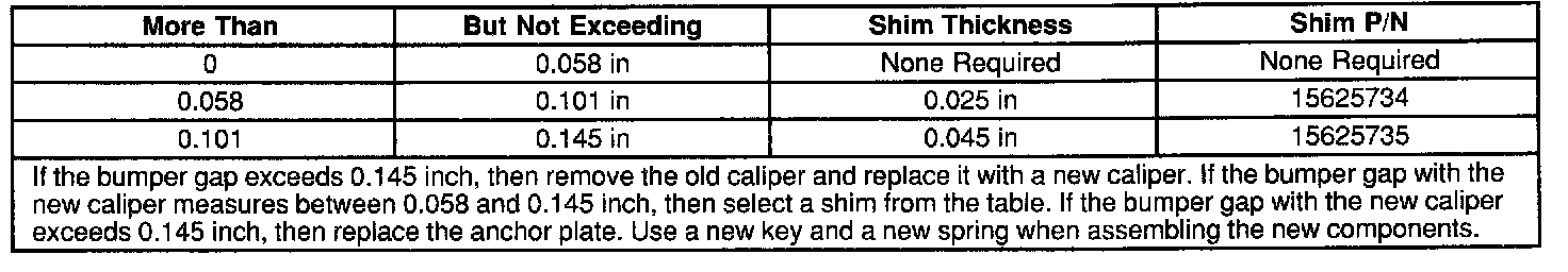 Caliper Wear Shim Specifications