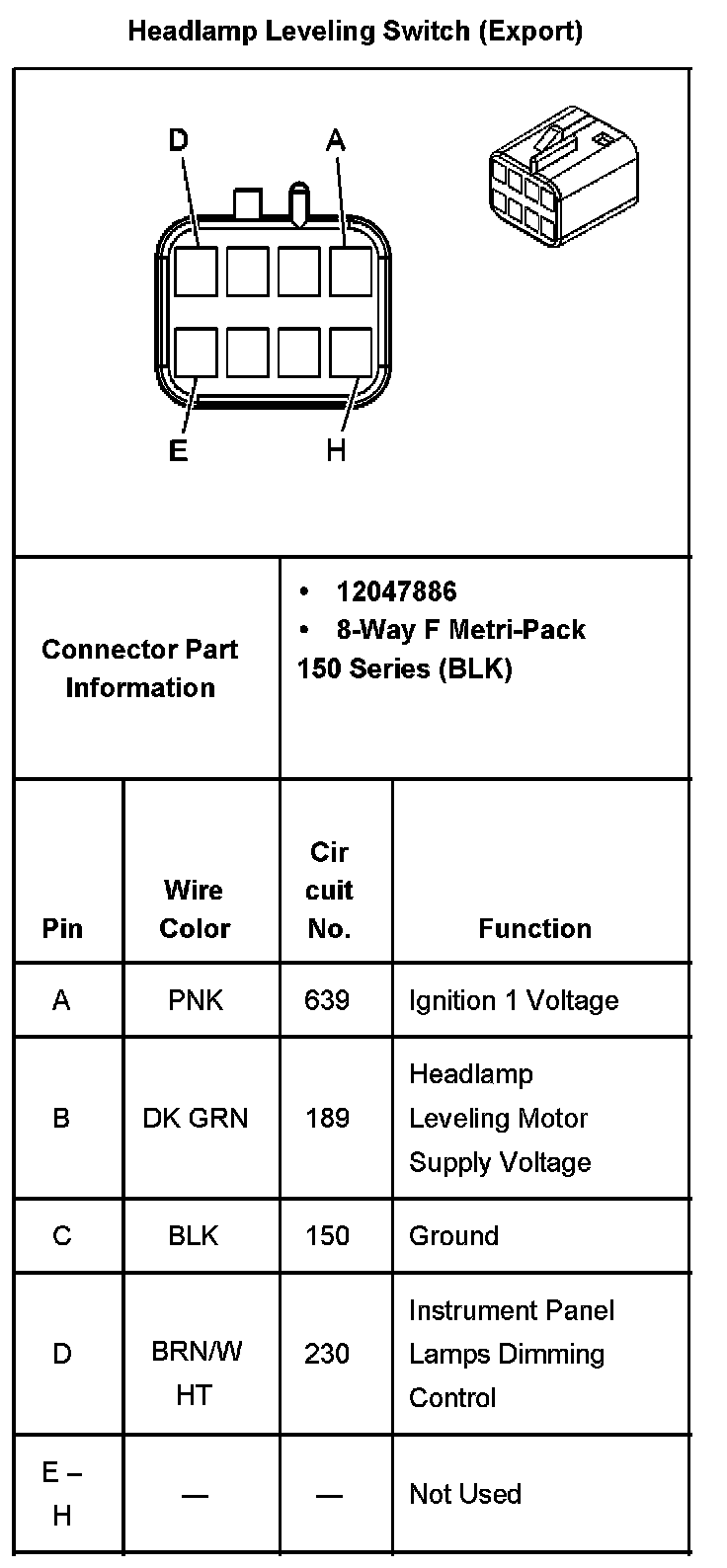 Headlamp Leveling Switch (Export):