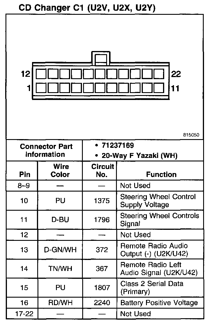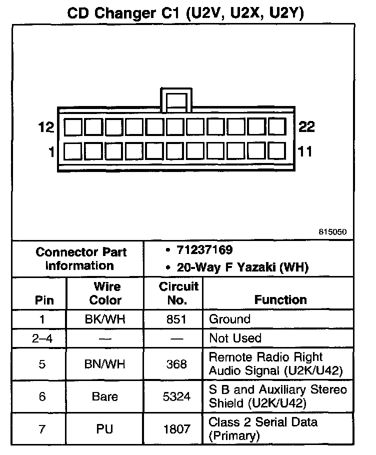 CD Changer C1 (With RPO Code U2V, U2X, U2Y):