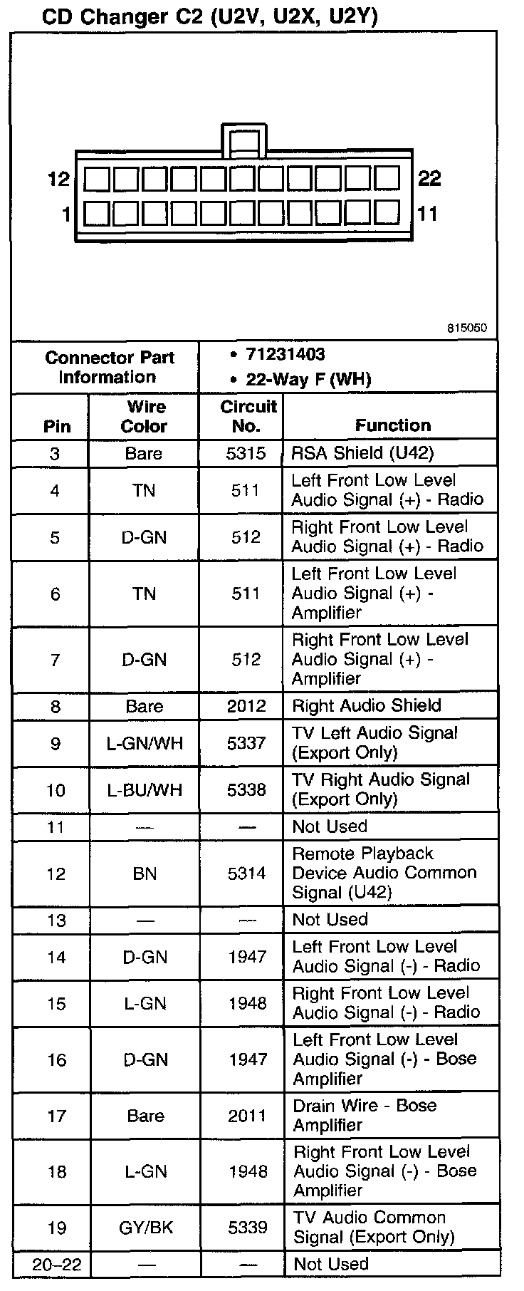 CD Changer C2 (With RPO Code U2V, U2X, U2Y):