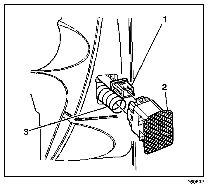 4. Disconnect the inside air temperature sensor (2) electrical connection (1).