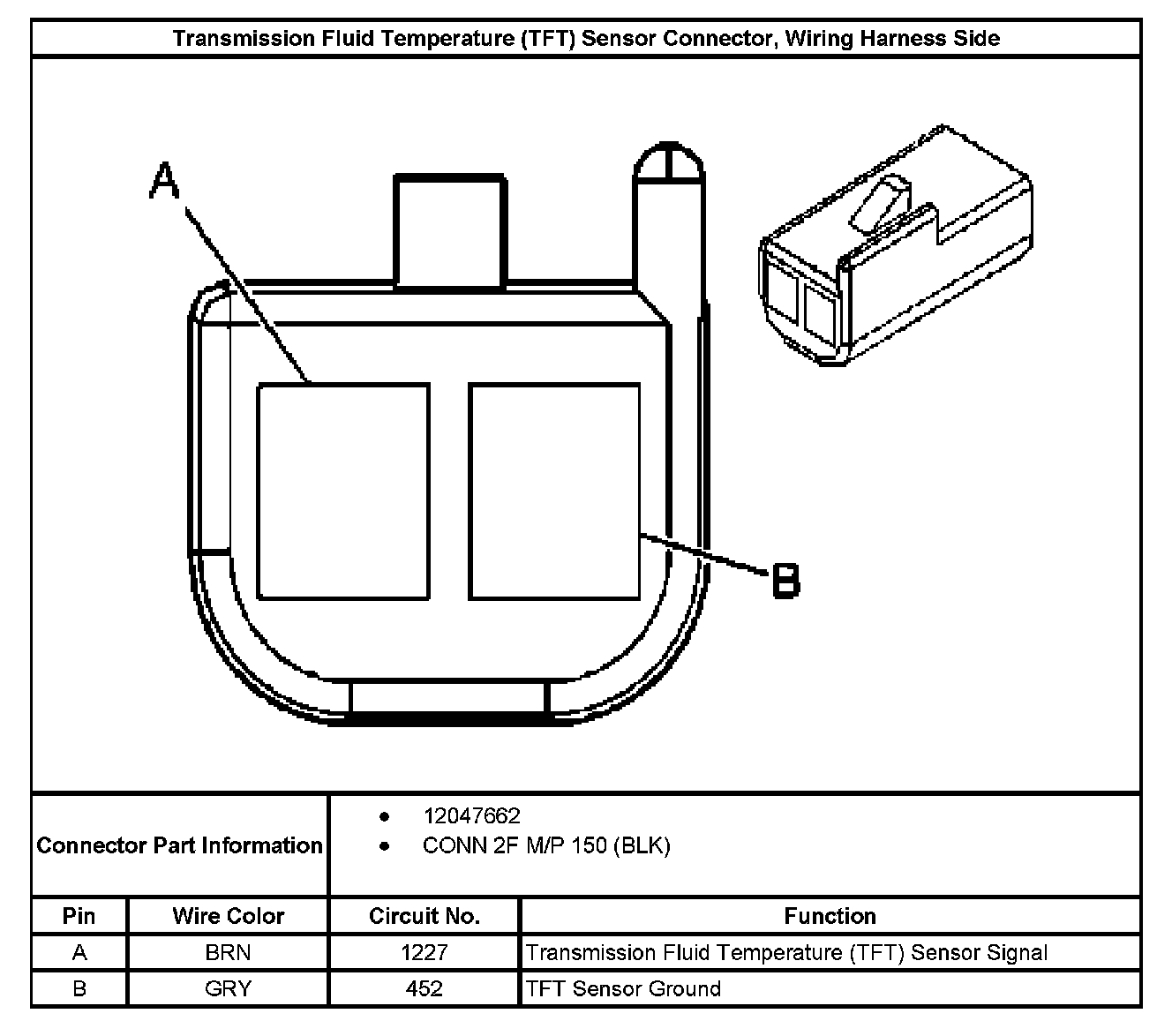 Transmission Fluid Temperature (TFT) Sensor Connector, Wiring Harness Side: