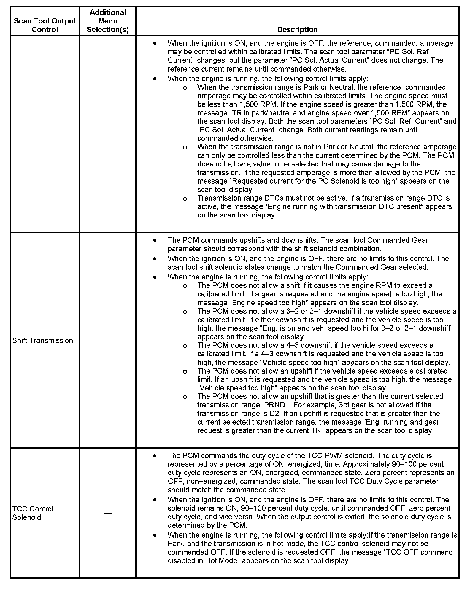 Scan Tool Output Controls