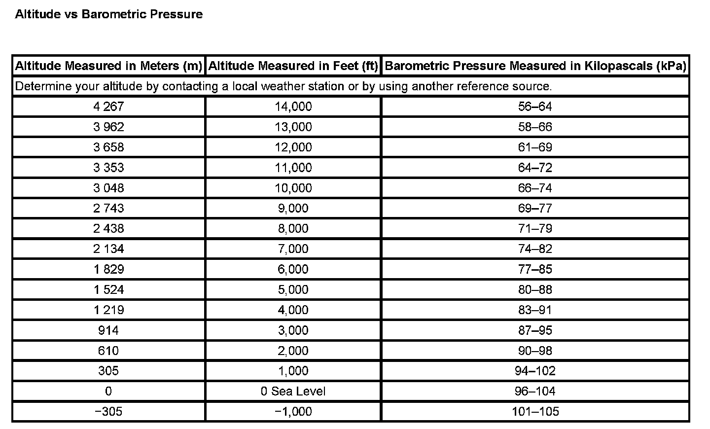 Altitude Vs Barometric Pressure: