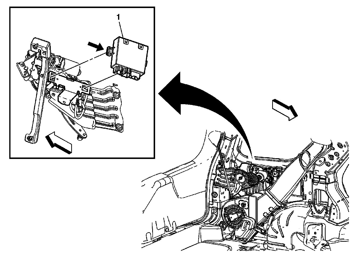 1. The liftgate control module is located behind the liftgate close actuator assembly.