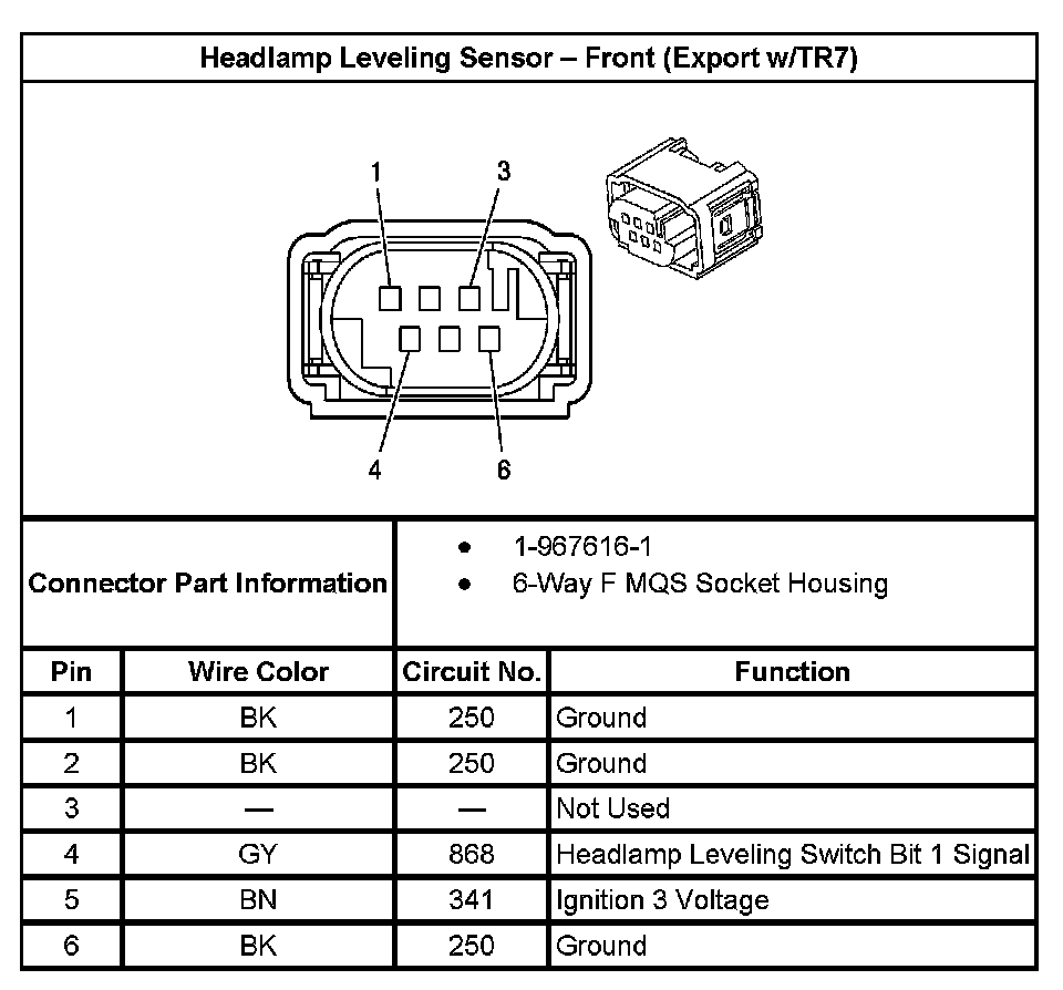 Headlamp Leveling Sensor - Front (Export With RPO Code TR7):