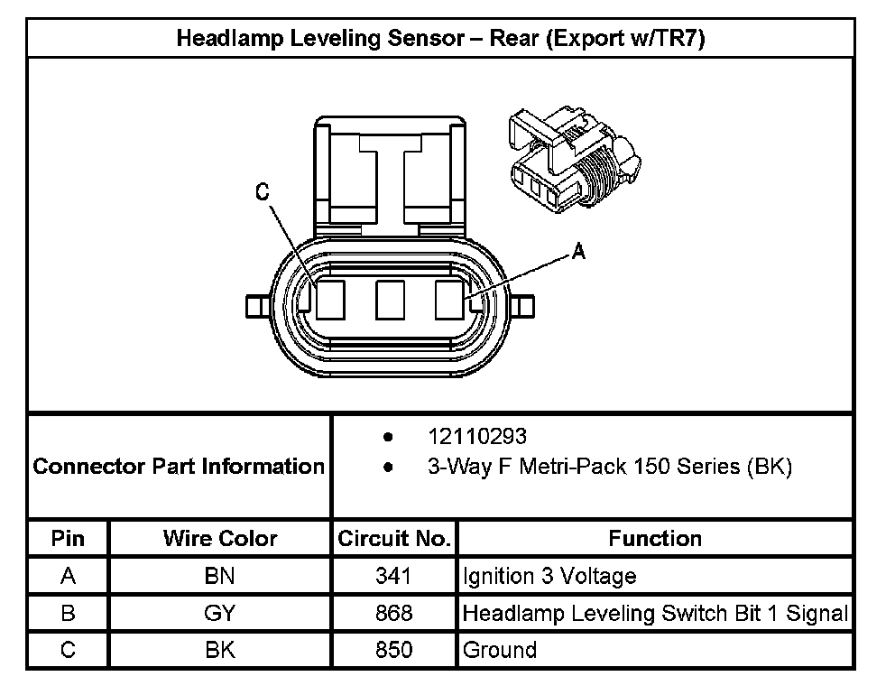 Headlamp Leveling Sensor - Rear (Export With RPO Code TR7):