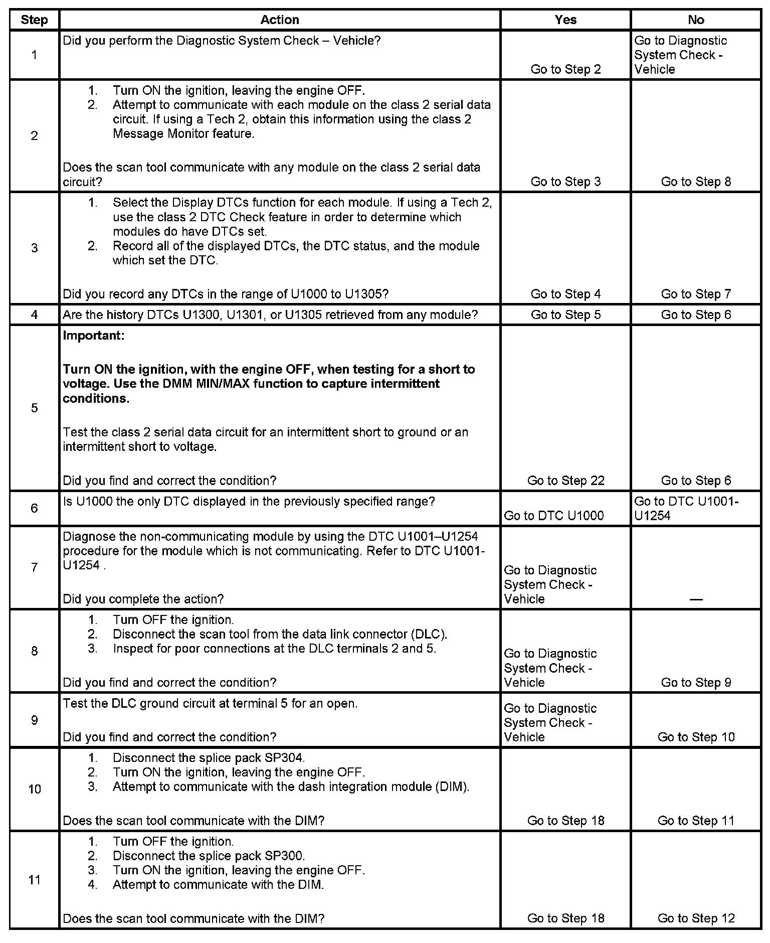 2. A partial malfunction in the class 2 serial data circuit uses a different procedure from a total malfunction of the class 2 serial data circuit. The following modules communicate on class 2 serial data bus: