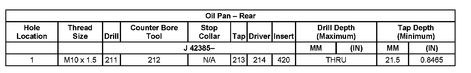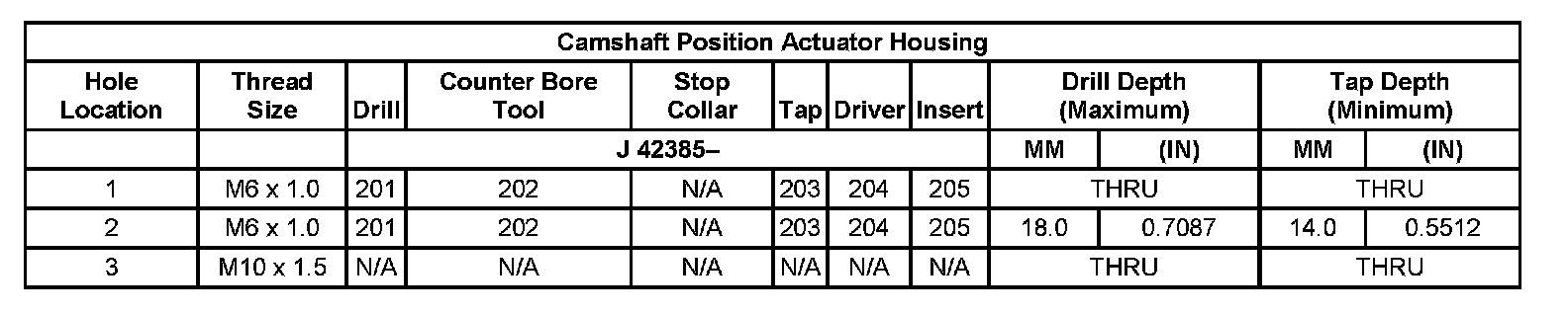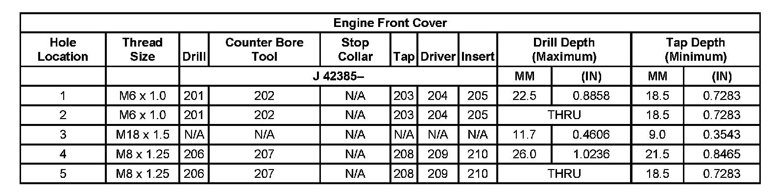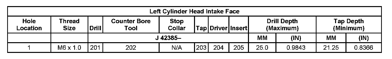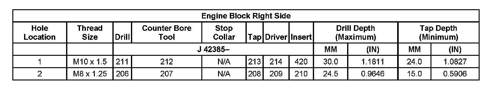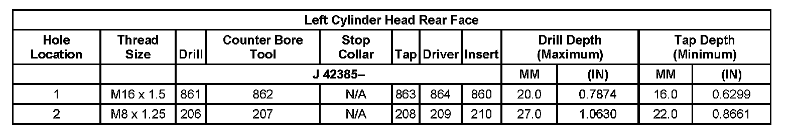 Thread Repair Specifications Left Cylinder Head Camshaft Cover Face: