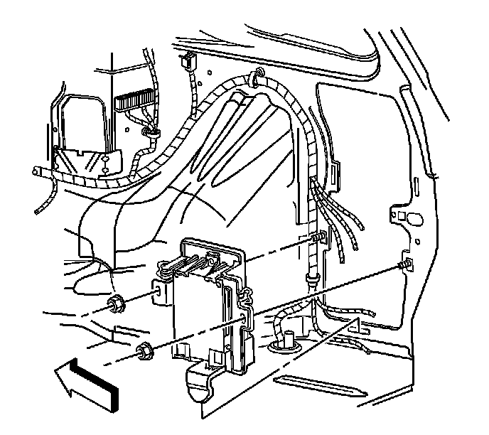 2. Remove the nuts securing the OnStar(R) module to the vehicle body.