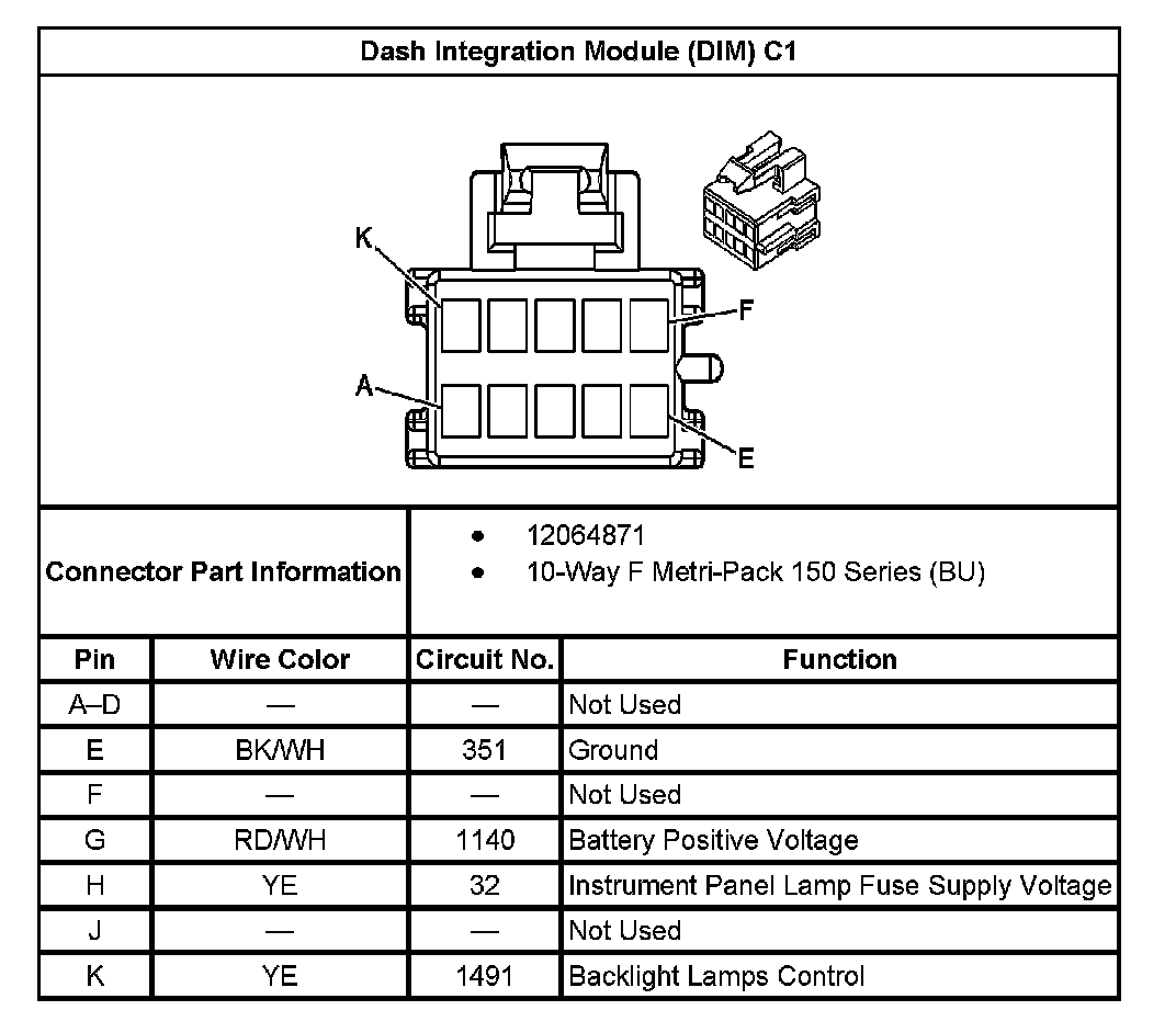 Dash Integration Module (DIM) C1: