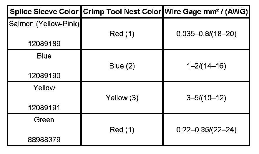 4. Select the proper DuraSeal splice sleeve according to the wire size. Refer to the above table at the beginning of the repair procedure for the color coding of the DuraSeal splice sleeves and the crimp tool nests.