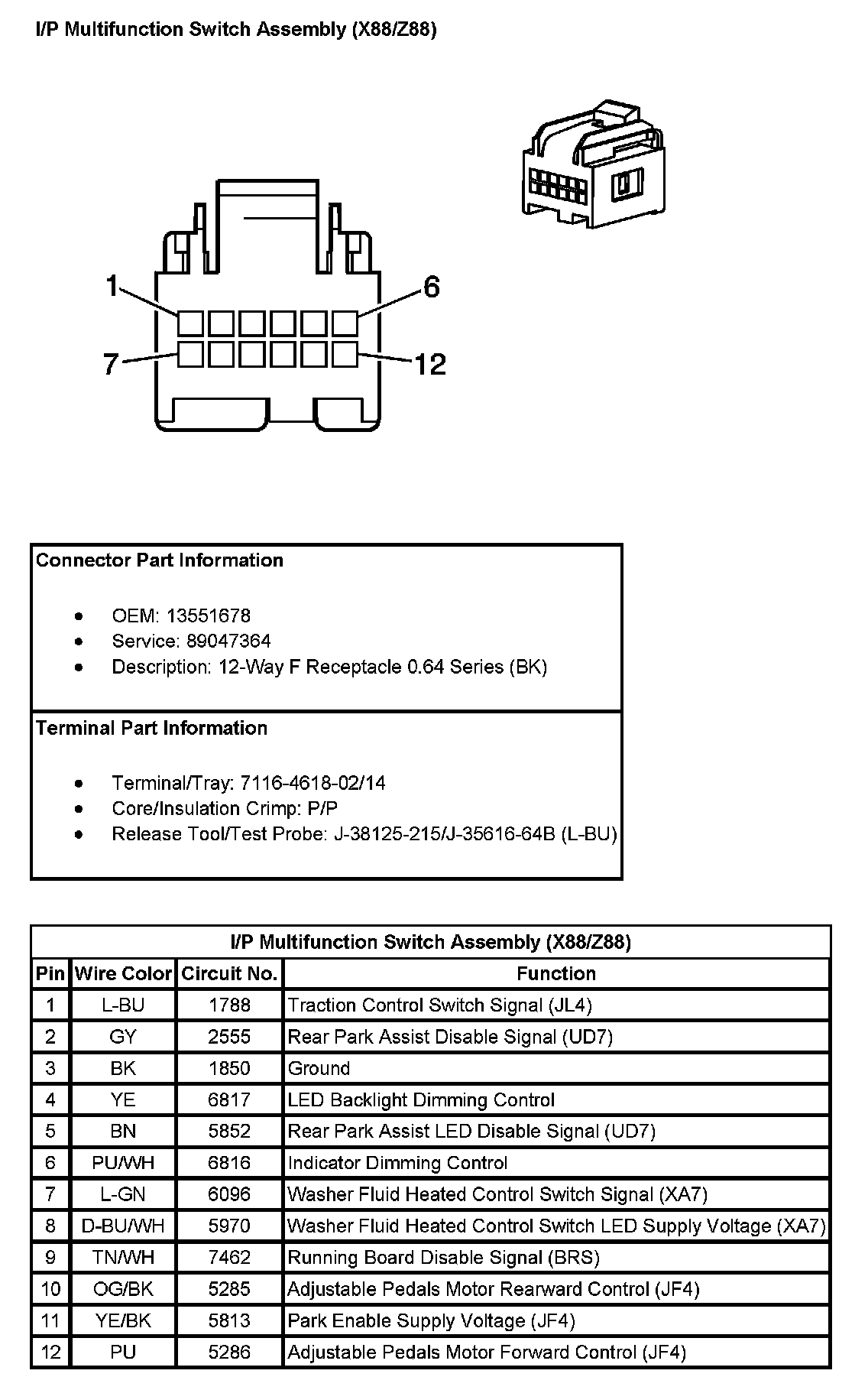 I/P Multifunction Switch Assembly (With RPO Codes X88/Z88):