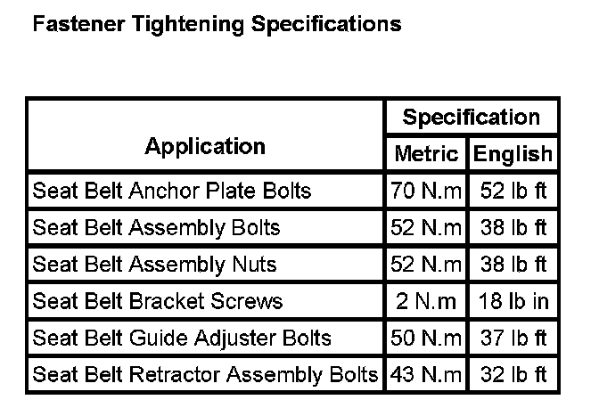 Seat Belt Systems: Specifications