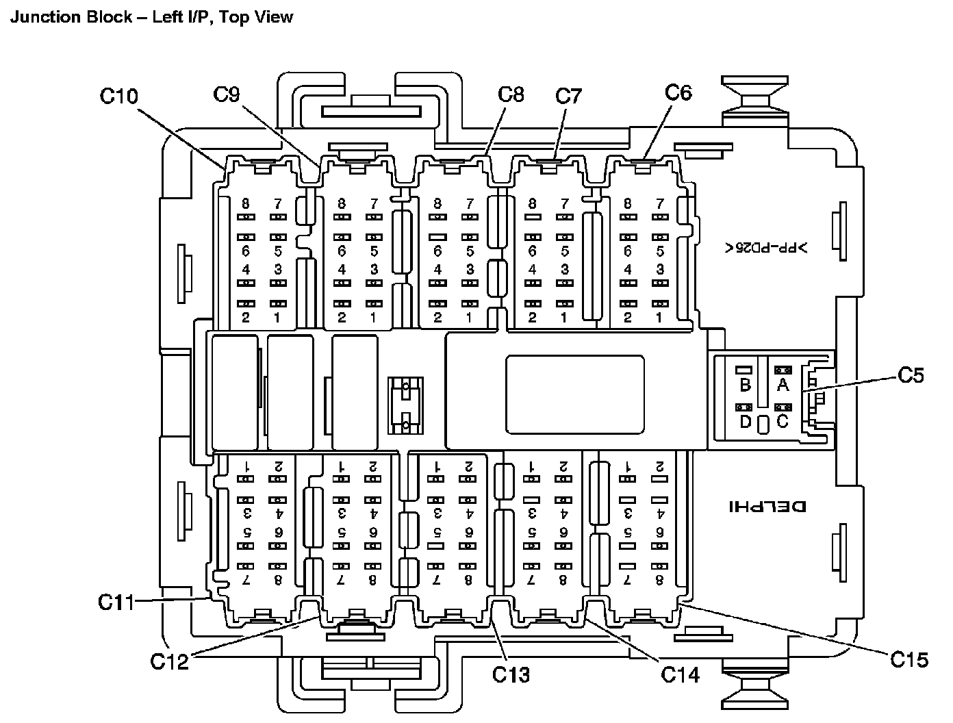 Junction Block - Left I/P, Top View: