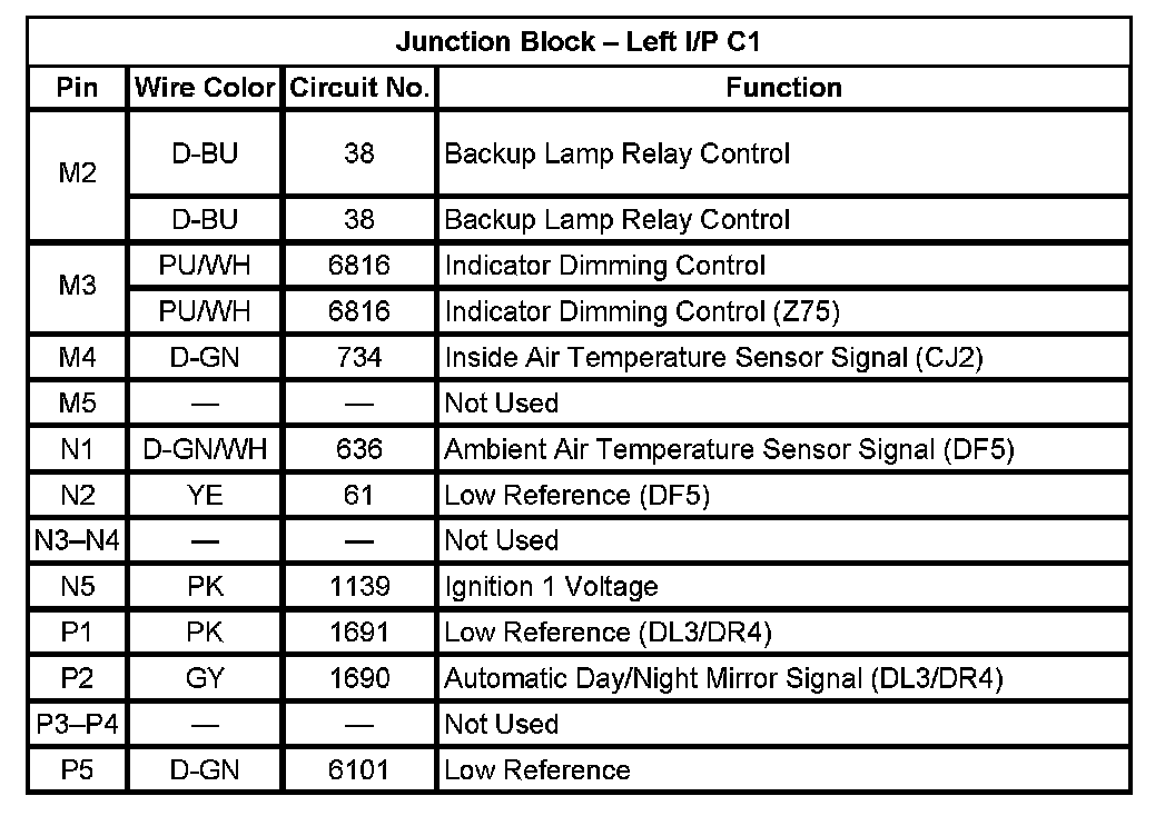 Junction Block - Left I/P C1 (Pin M2 To P5):
