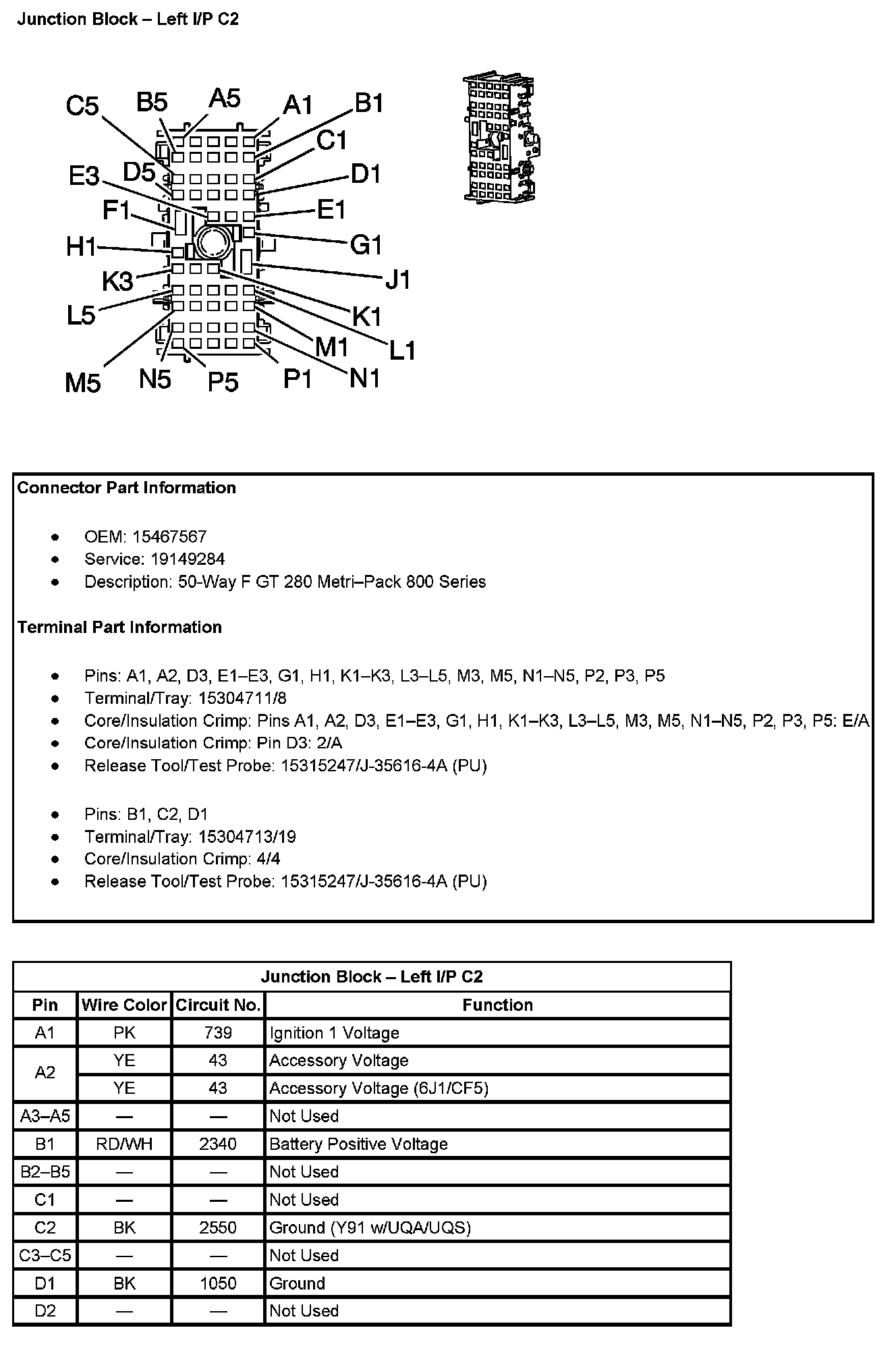 Junction Block - Left I/P C2 (Pin A1 TO D2):
